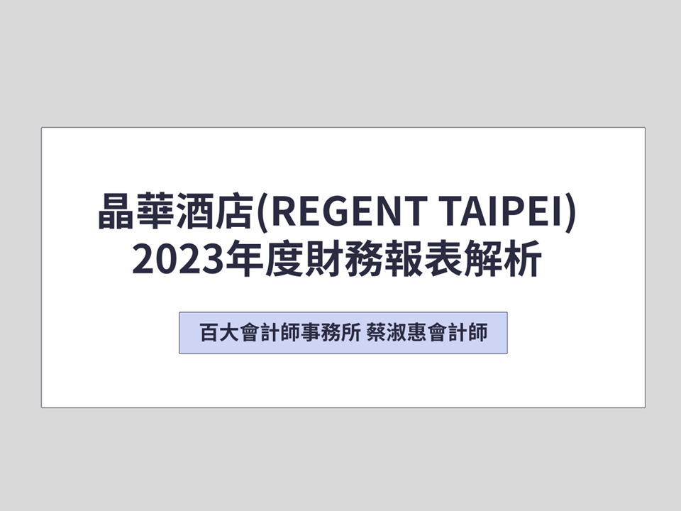 「中英字幕」晶華酒店(REGENT TAIPEI)財務報表解析「可下載電子講義」
