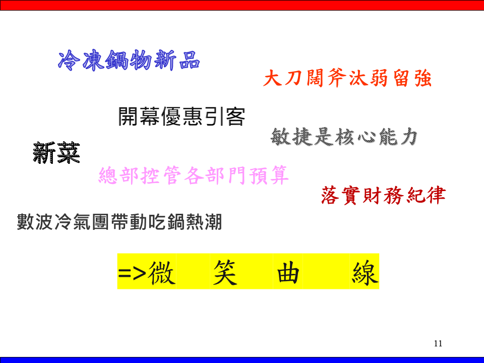 與其他餐飲業者(如漢來美食、統一超)進行經營效率比較