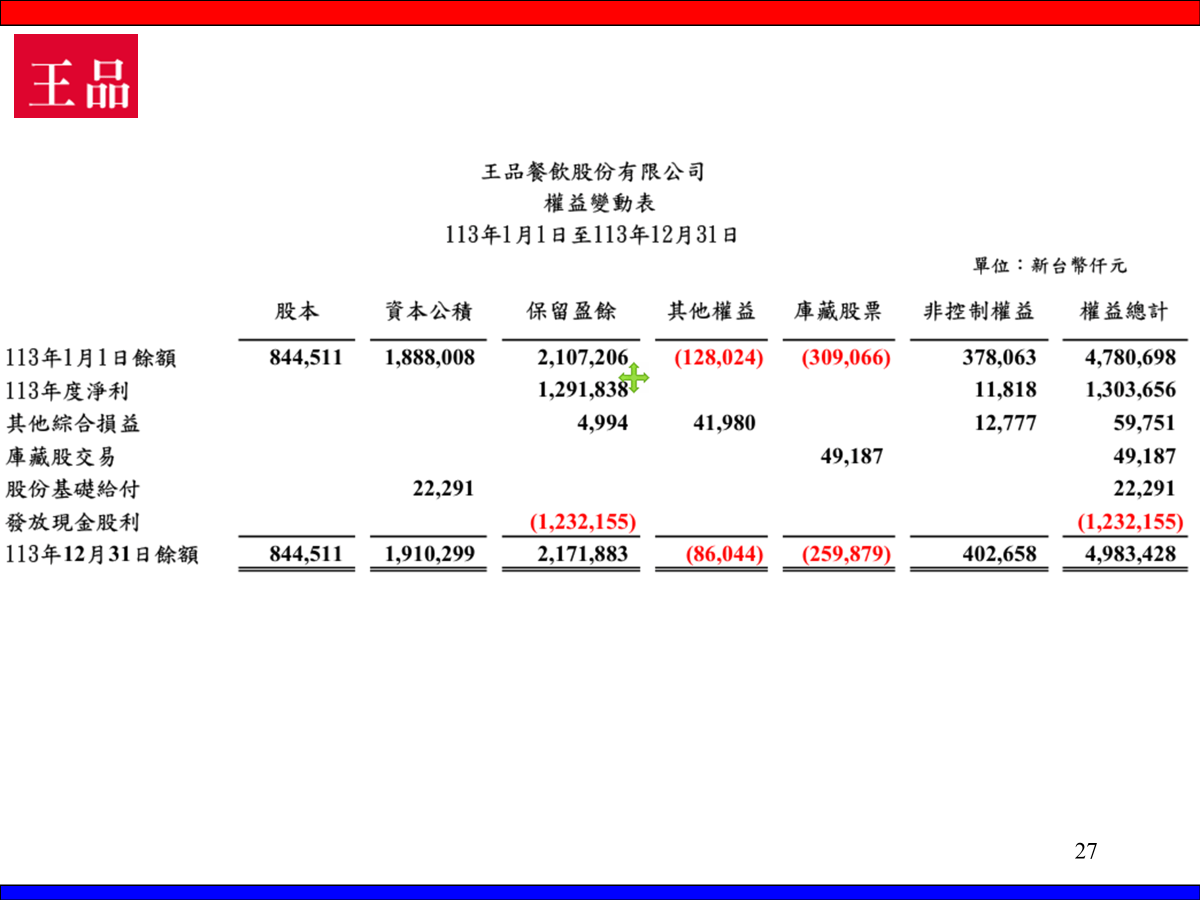王品餐飲2024年財務報表解析「可下載電子講義」