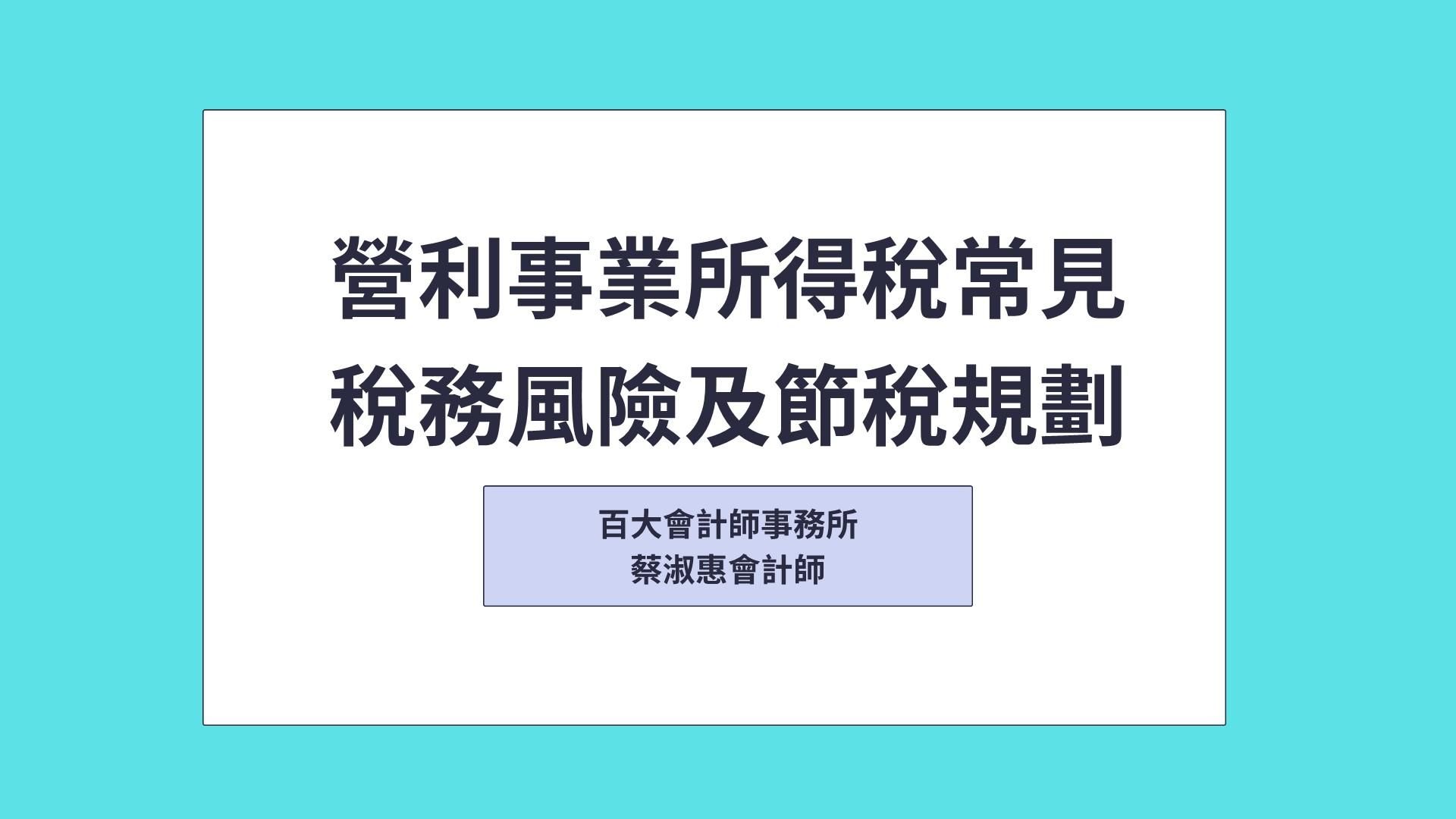 營利事業所得稅常見稅務風險及節稅規劃(114年營所稅申報書及最新租稅優惠解析115年5月申報適用)「可下載電子講義」