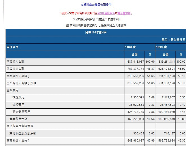 台積電110年淨利率-109年淨利率/109年淨利率
