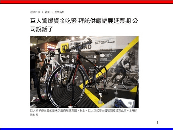 #巨大驚爆資金吃緊 拜託供應鏈展延票期#