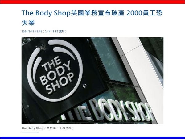 全球知名美妝品牌 The Body Shop 宣布在英國破產